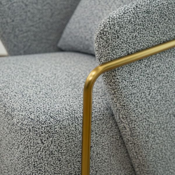 Built on a gold brushed stainless steel frame, the chair offers both durability and elegance. The wraparound arm and back design creates a cozy, supportive seating experience that’s perfect for lounging, reading, or adding an accent to your home décor.