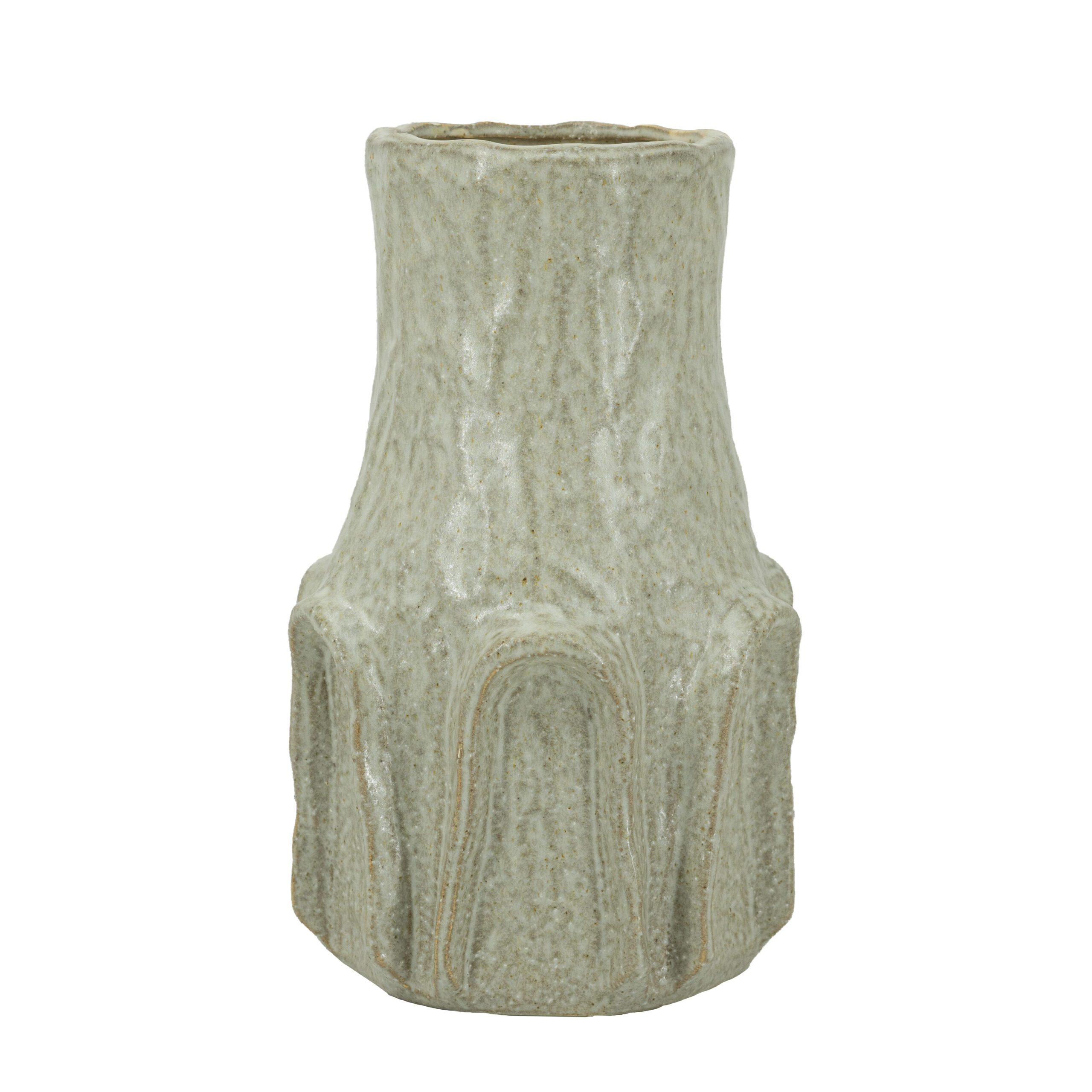 Add a sophisticated earthy element to your space with this tall textured ceramic vase. Its raw-edged glaze and raised arched details make it a perfect statement for minimalist, rustic, or coastal interiors. Style it with dried stems or display it solo on consoles, mantels, or open shelving.